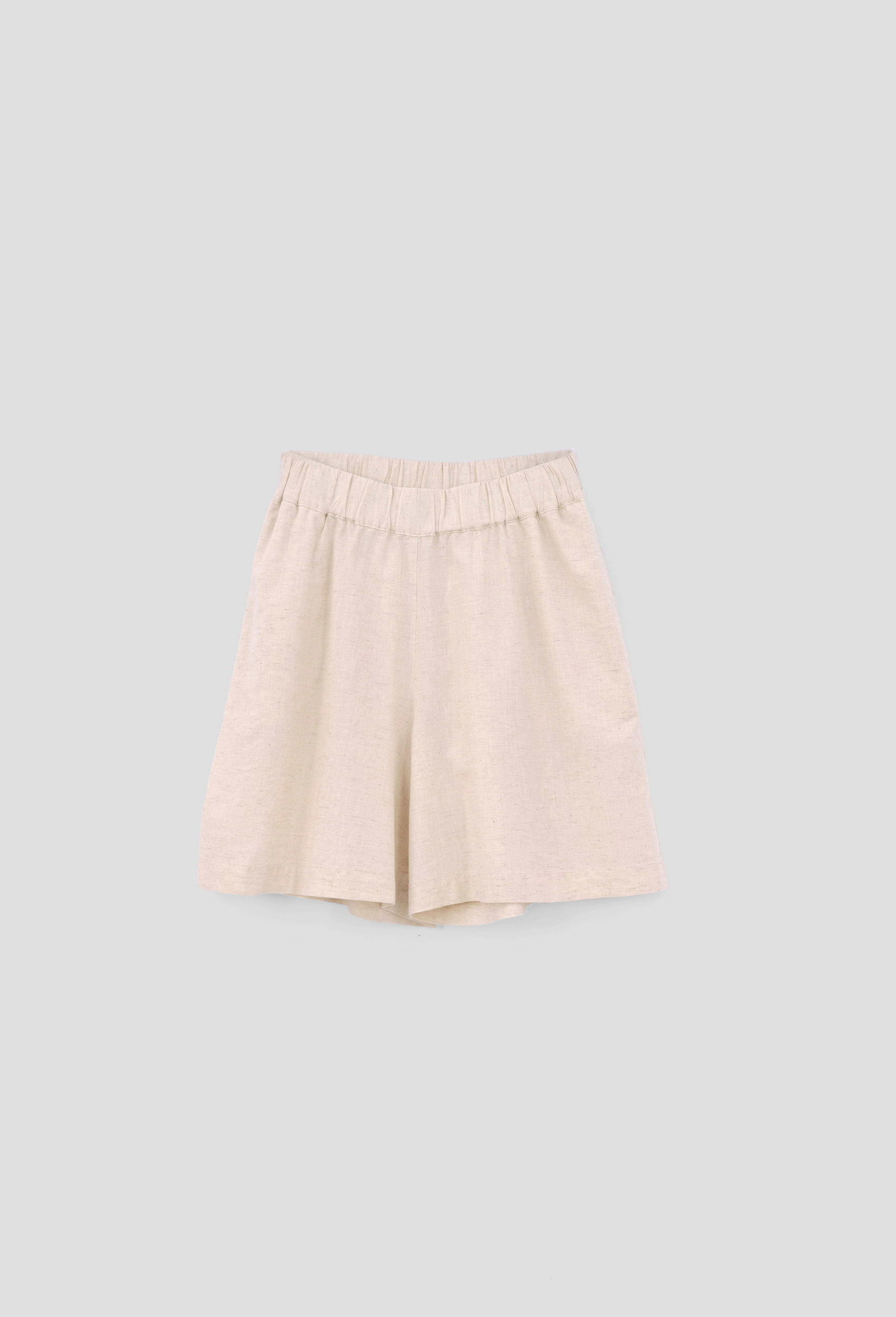 This relax fit short in natural tones offers all day comfort with its soft texture.The elastic waist band provides both ease and a modern effortless look
