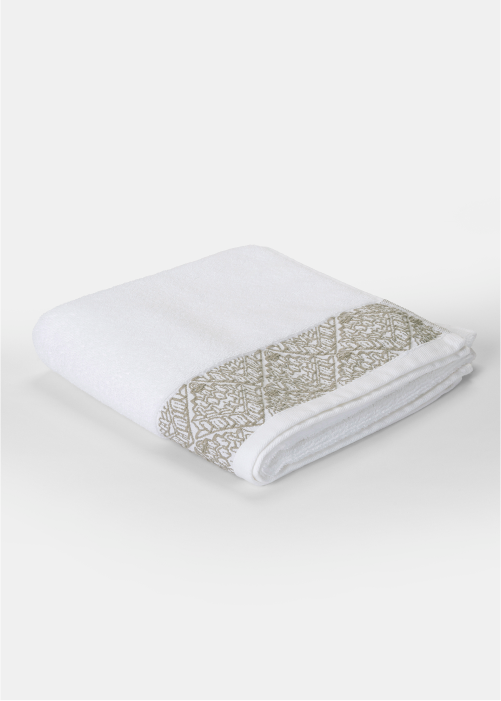 "Mukarnas" desen işlemeli beyaz pamuk baş havlusu.