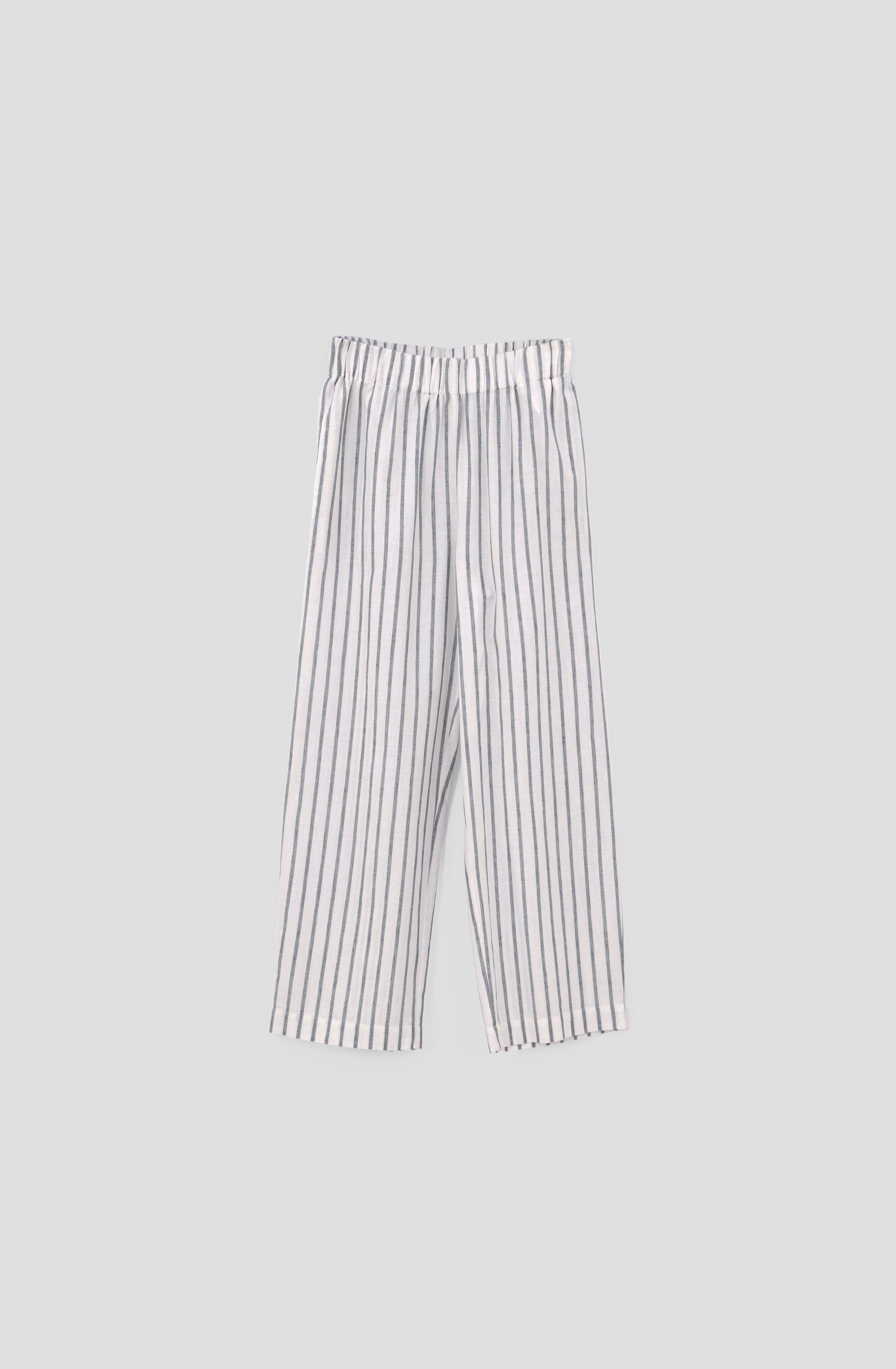 İnce dikey çizgileriyle öne çıkan pantolon, hafif yapısı ve esnek beli sayesinde gün boyu konfor sunar. Temiz ve sade görünümüyle ister evde ister şehirde, her ortamda ferah ve düzenli bir stil oluşturur.