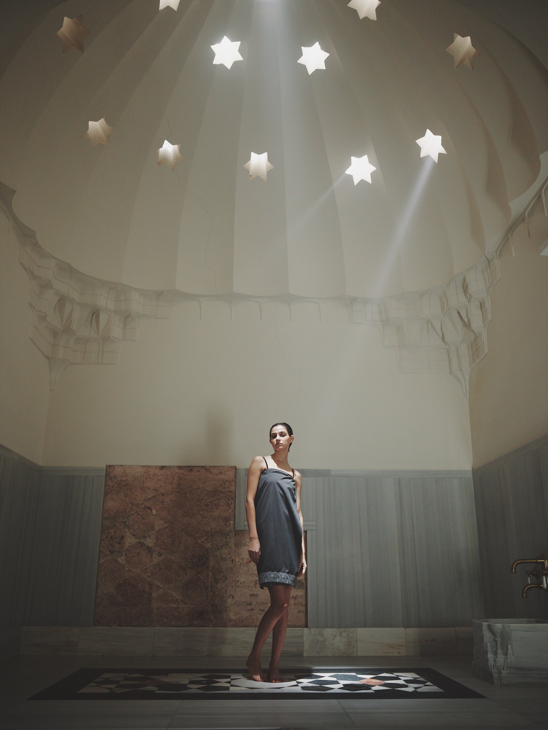 Mukarnas işlemeli özel peştemal ve kadın mayo takımı, hem birlikte hem de ayrı ayrı kullanılabilir.