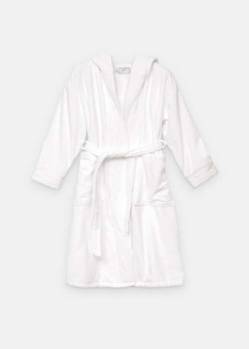 %100 pamuklu, mukarnas nakışlı bu bornoz, rahat kesimiyle konfor sunar.